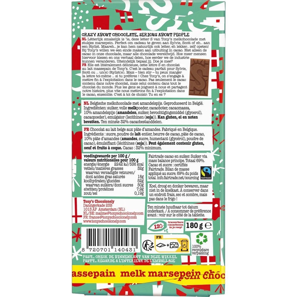 Tony's Chocolonely Milk Marzipan blends smooth milk chocolate with sweet marzipan. Perfect for a delicious and nutty treat anytime.