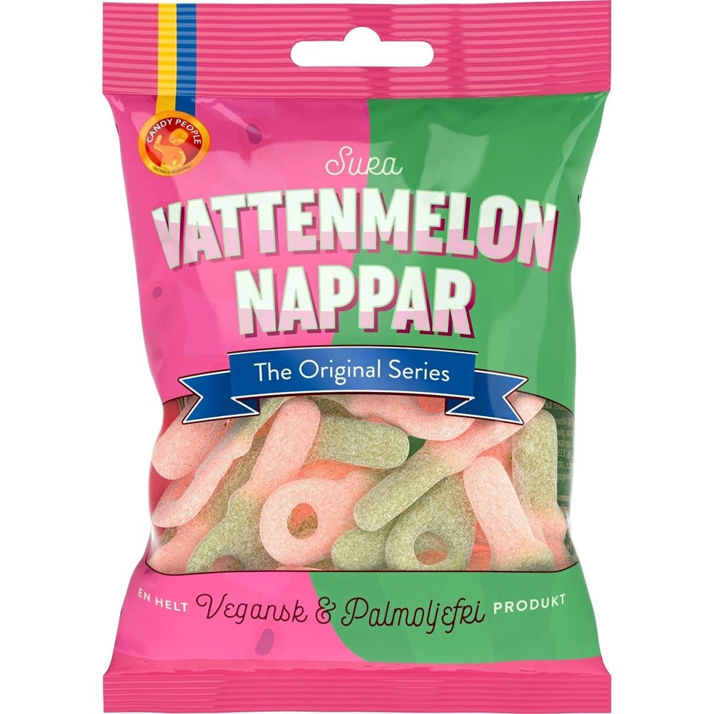 Candy People Nappar Watermelon Sour are chewy candies bursting with juicy watermelon flavor and a tangy sour kick. Shaped like pacifiers, these treats offer a fun and fruity experience for candy lovers of all ages. Perfect for snacking, sharing, or adding to candy bowls, they deliver a refreshing blend of sweetness and zing. Enjoy the playful and delicious taste of Candy People Nappar Watermelon Sour for a treat full of flavor.