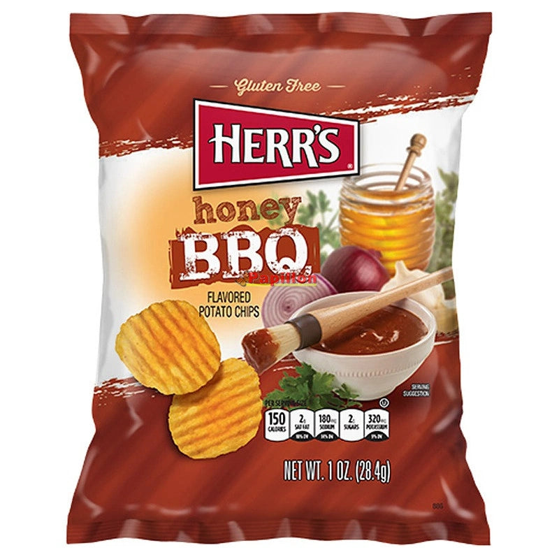 Herr's Honey BBQ chips combine sweet honey and smoky barbecue flavors in a crunchy snack. A delicious treat perfect for sharing or enjoying anytime!
