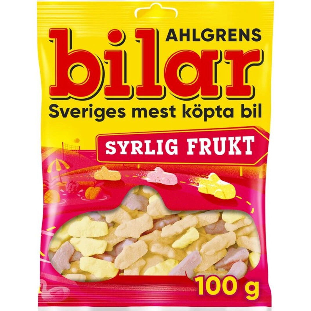 Ahlgrens Bilar Sour Fruit are soft and chewy car-shaped candies with a tangy fruit flavor. These classic Swedish gummies come in a mix of delicious sour fruit flavors, offering the perfect balance of sweetness and tartness. Ideal for snacking, sharing, or satisfying sour candy cravings, they are loved by all ages. Enjoy the fun and zesty taste of Ahlgrens Bilar Sour Fruit for a tasty and exciting treat!