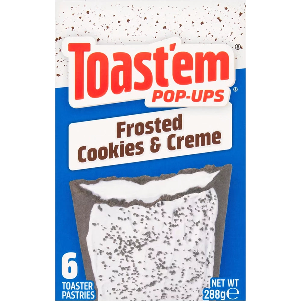Enjoy the delightful taste of Toast'em Pop-Ups Cookies & Creme! These tasty toaster pastries are filled with a sweet, creamy cookies & creme filling and topped with a delicious frosting. Perfect for breakfast or a quick snack, Toast'em Pop-Ups are easy to toast and deliver a warm, satisfying treat in minutes. Indulge in the classic cookies & creme flavor anytime with these convenient pastries.