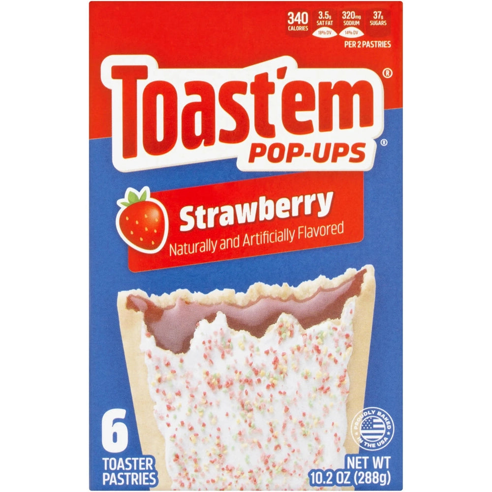 Toast’em Pop-Ups Strawberry are sweet pastries with fruity strawberry filling. They’re easy to toast or eat cold for a quick and tasty snack anytime.