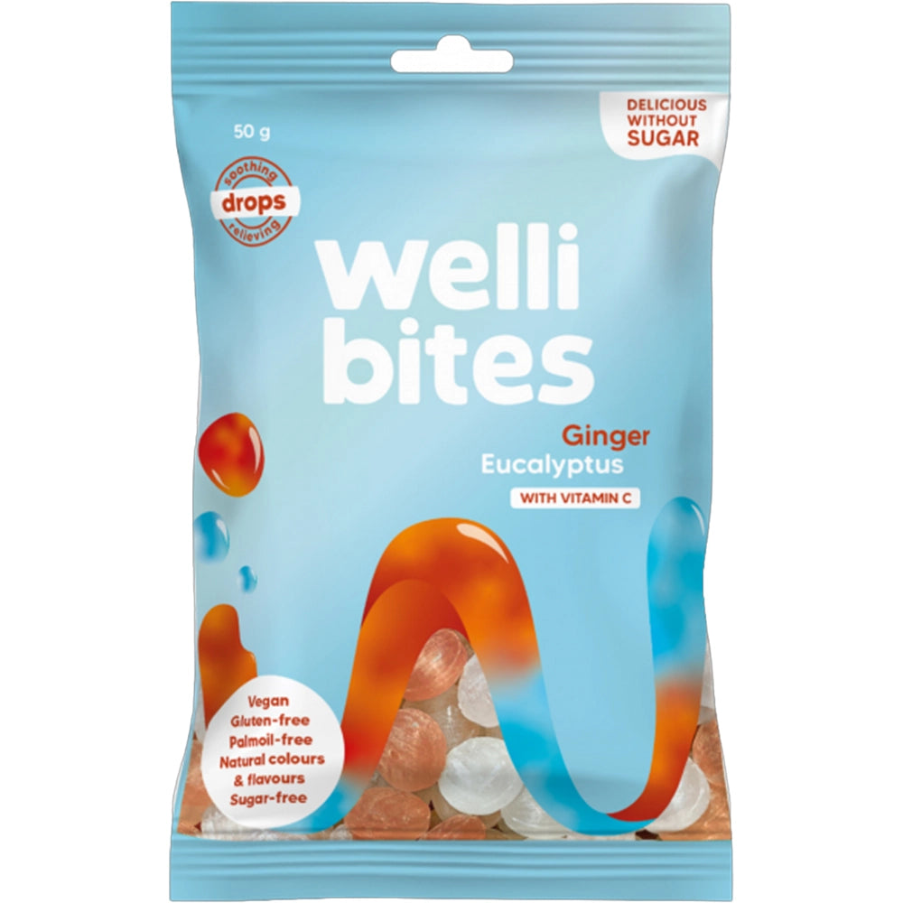 Wellibites Drops Ginger Eucalyptus are soothing, sugar-reduced candies that combine the warming spice of ginger with the refreshing taste of eucalyptus. Made with natural ingredients and added vitamins, these vegan-friendly drops are perfect for calming your throat or enjoying as a refreshing treat. Ideal for health-conscious snackers, they offer a guilt-free option with bold, invigorating flavors. Enjoy the comforting and revitalizing taste of Wellibites Drops Ginger Eucalyptus anytime.