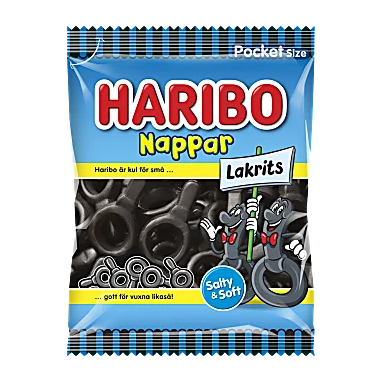 Savor the rich and intense flavor of Haribo Nappar Liquorice candies. These soft and chewy treats feature the classic taste of liquorice, offering a delightful indulgence for liquorice lovers everywhere.