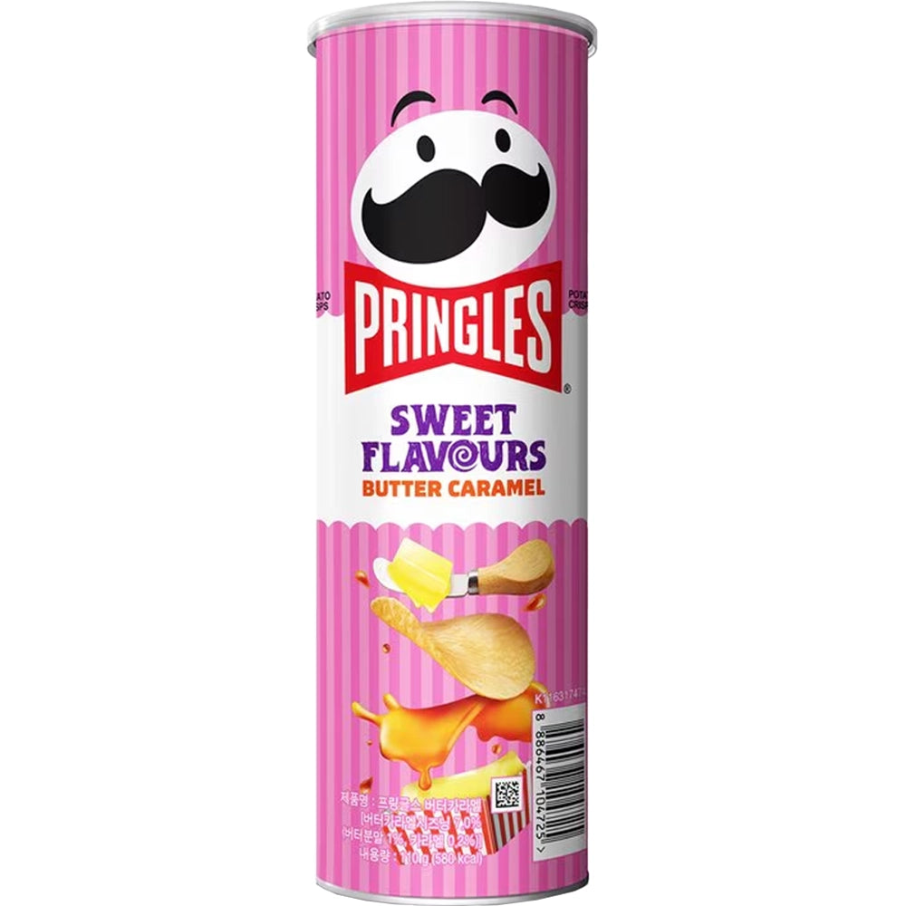 Enjoy Pringles Sweet Butter Caramel chips! Crispy chips with a sweet caramel and buttery flavor—perfect for a fun, unique snack anytime you want something special.
