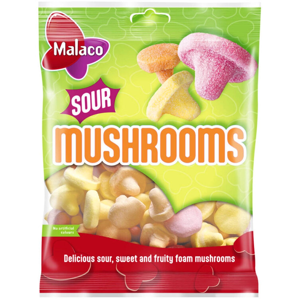 Malaco Sour Mushrooms are chewy, mushroom-shaped gummies with fruity flavors and a sour sugar coating. They’re fun, tangy, and perfect for a tasty snack.