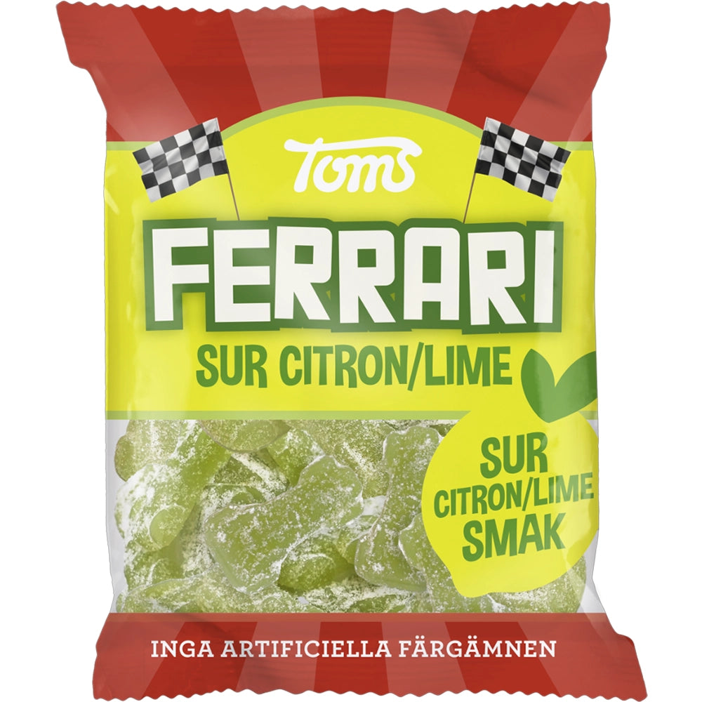 Speed into sour candy fun with Toms Ferrari Sour Lemon Lime! These chewy, car-shaped gummies are bursting with bold lemon and lime flavor, offering the perfect balance of sweet and sour. Made in Denmark, they’re a favorite for gummy lovers who enjoy a zesty twist. Great for snacking, sharing, or a sour candy fix, each bite delivers a refreshing citrus punch. Taste the fun and flavor of Ferrari-shaped gummies!