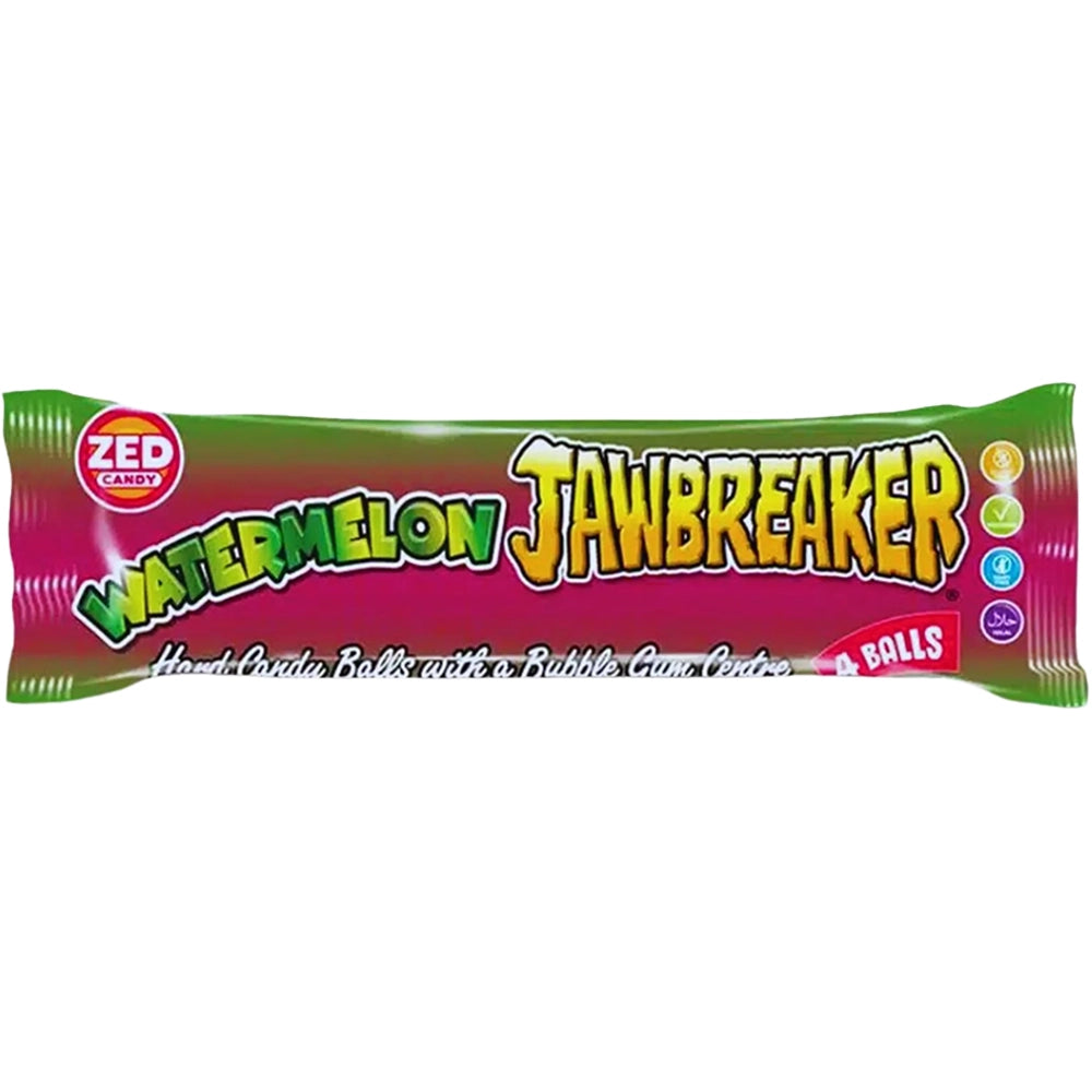 Jawbreaker Watermelon is a juicy candy treat that lasts! Discover a hard candy ball that's bursting with refreshing watermelon flavor. From its tangy exterior to its sweet inner core, every bite is a watermelon wonder. It's a fantastic treat for those who love a mix of crunch and flavor. Enjoy a sunny, watermelon-filled moment with every chew! 4 balls per pack.