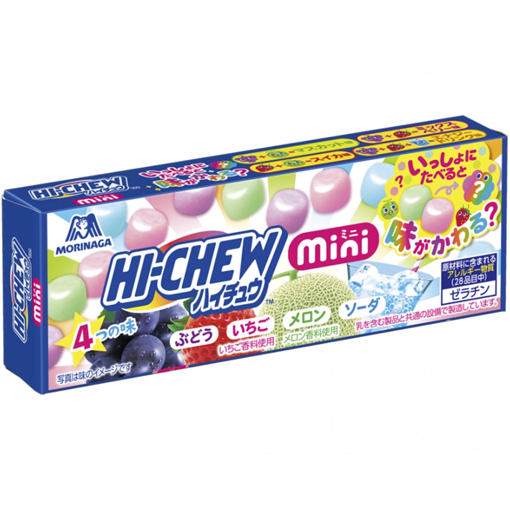 Morinaga Hi-Chew Mini Mix features bite-sized chewy candies in fruity flavors. A fun and tasty treat perfect for snacking, sharing, or enjoying anytime!
