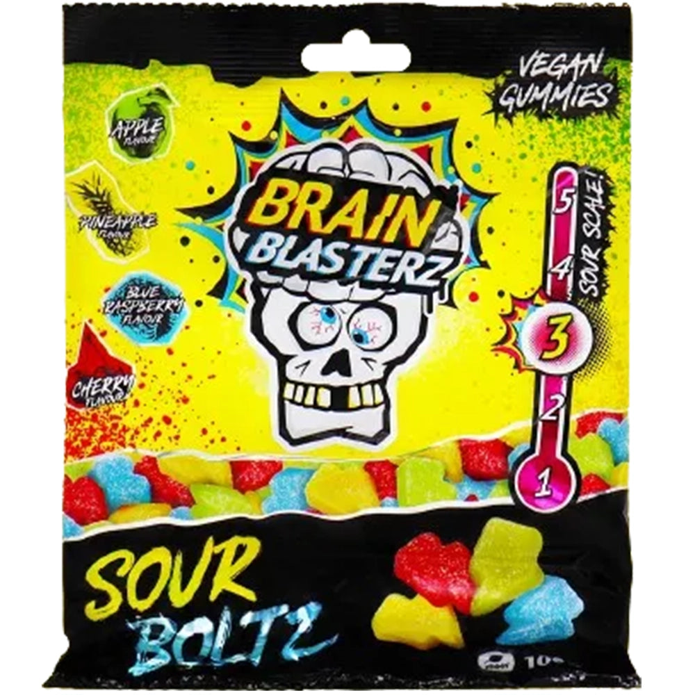 Brain Blasterz Sour Boltz are sour gummies in Apple, Blue Raspberry, Cherry, and Pineapple flavors. Perfect for a fun and tangy candy treat anytime.