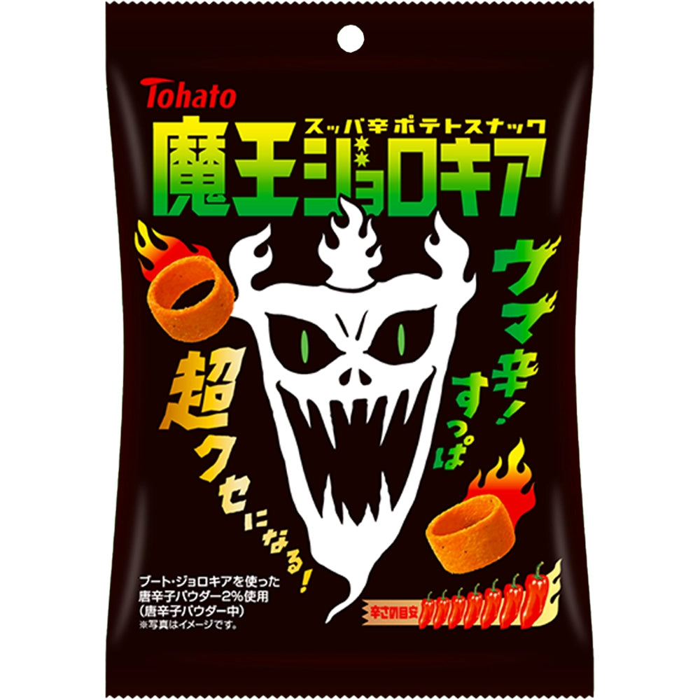 Dare to try Tohato Demon King Jolokia chips, featuring the explosive heat of the ghost pepper. Only for the bravest spice enthusiasts.