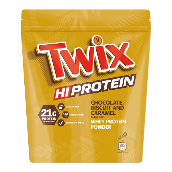 Twix High Protein Powder offers 21g of protein with the flavors of caramel, chocolate, and biscuit. Perfect for a tasty, protein-rich shake after workouts.