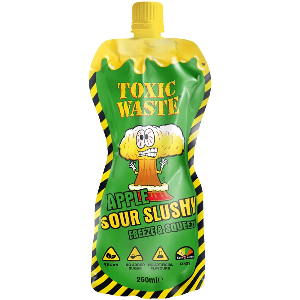 Toxic Waste Sour Slushy Apple delivers intense sour apple flavor in a fun slushy texture. Perfect for a refreshing and tangy treat anytime.