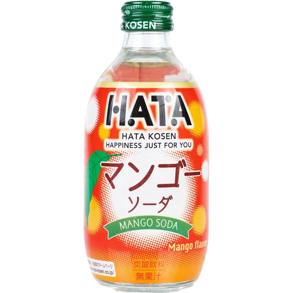 Probeer Hatakosen Mango Soda! Een sprankelende Japanse mangodrank in een schattig flesje — licht, zoet en verfrissend — perfect wanneer je zin hebt in tropische bubbels.