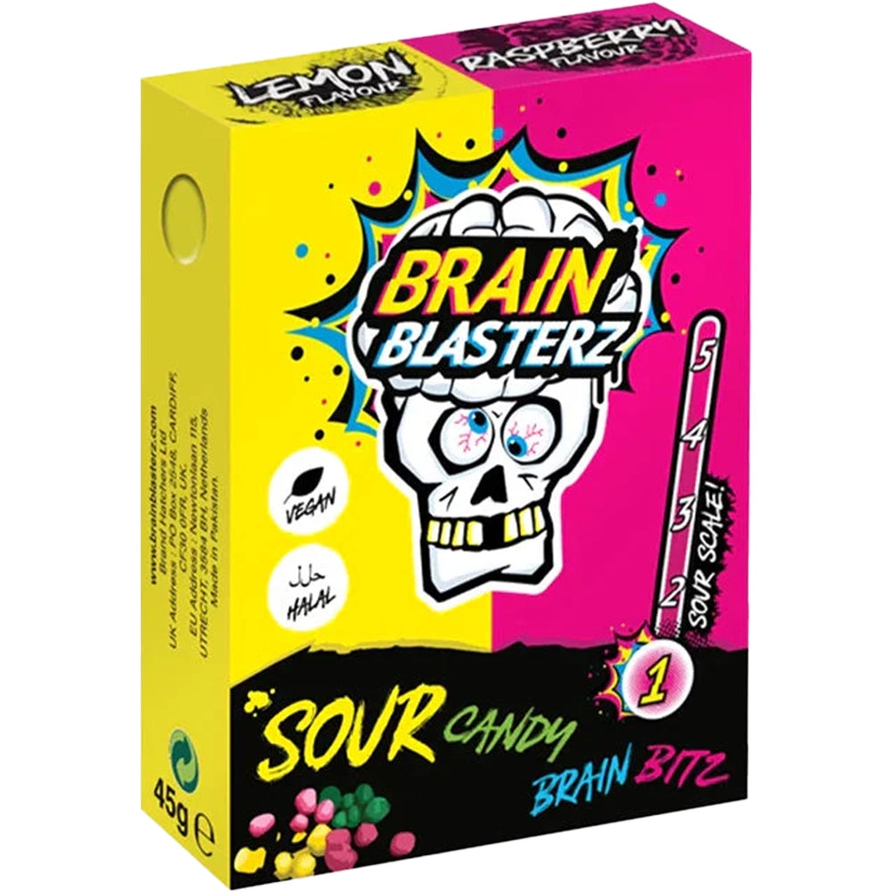 Brain Blasterz Sour Candy Bitz zijn kleine, pittige snoepjes boordevol extreem zure smaak en fruitige heerlijkheid. Deze hapklare snoepjes bezorgen bij elk stuk een mondsamentrekkende ervaring, perfect voor liefhebbers van zuur snoep. Geweldig om te snacken, te delen of om elk moment een zure kick te geven; ze zijn een absolute aanrader voor sensatiezoekers. Geniet van het spannende zure avontuur van Brain Blasterz Sour Candy Bitz en daag je smaakpapillen vandaag nog uit!