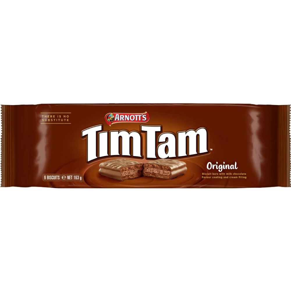 Geniet van de rijke, chocoladeachtige smaak van Arnott's Tim Tam Original! Deze iconische Australische koekjes hebben een smeuïge chocoladecrèmevulling, zitten tussen knapperige chocoladekoekjes en zijn omhuld met een rijke chocoladelaag. Perfect om te snacken, te delen of te genieten met een warme drank. Tim Tams zijn wereldwijd geliefd om hun onweerstaanbare textuur en smaak. Ervaar de klassieke traktatie die de perfectie van chocoladekoekjes definieert.