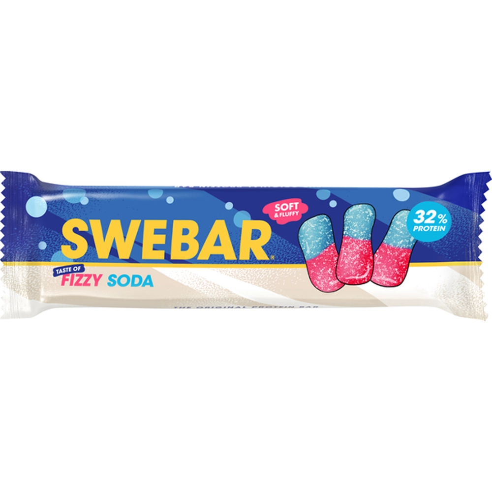 Swebar Fizzy Soda is a tasty protein bar inspired by the fresh taste of fizzy soda candy. It has a soft and chewy texture with a sweet and slightly tangy flavor that feels fun and refreshing. Packed with protein, it is a great snack for active lifestyles or when you need extra energy during the day. Perfect for workouts, busy days, or a flavorful protein treat anytime.
