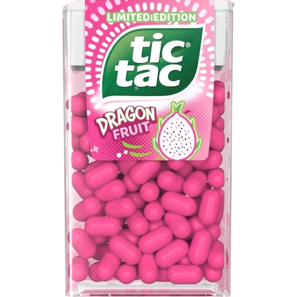 Discover the bold and fruity flavor of Tic Tac Dragon Fruit – a refreshing twist on the classic mint! These tiny, crunchy candies burst with exotic dragon fruit taste in every bite, making them perfect for freshening your breath or just enjoying a sweet, tropical moment. Convenient and portable, Tic Tac Dragon Fruit is the ideal pocket-sized treat for any time of day. Try this limited edition flavor while it lasts!